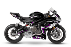 For the production of your graphics kits, we use state-of-the-art large-format printers. This allows us to create your Aprilia graphics kits in all colors and with the highest quality. Our factory designs are available in green, blue, red, gray, or pink. Your custom stickers can also be printed in neon colors, chrome, or with holographic effects.