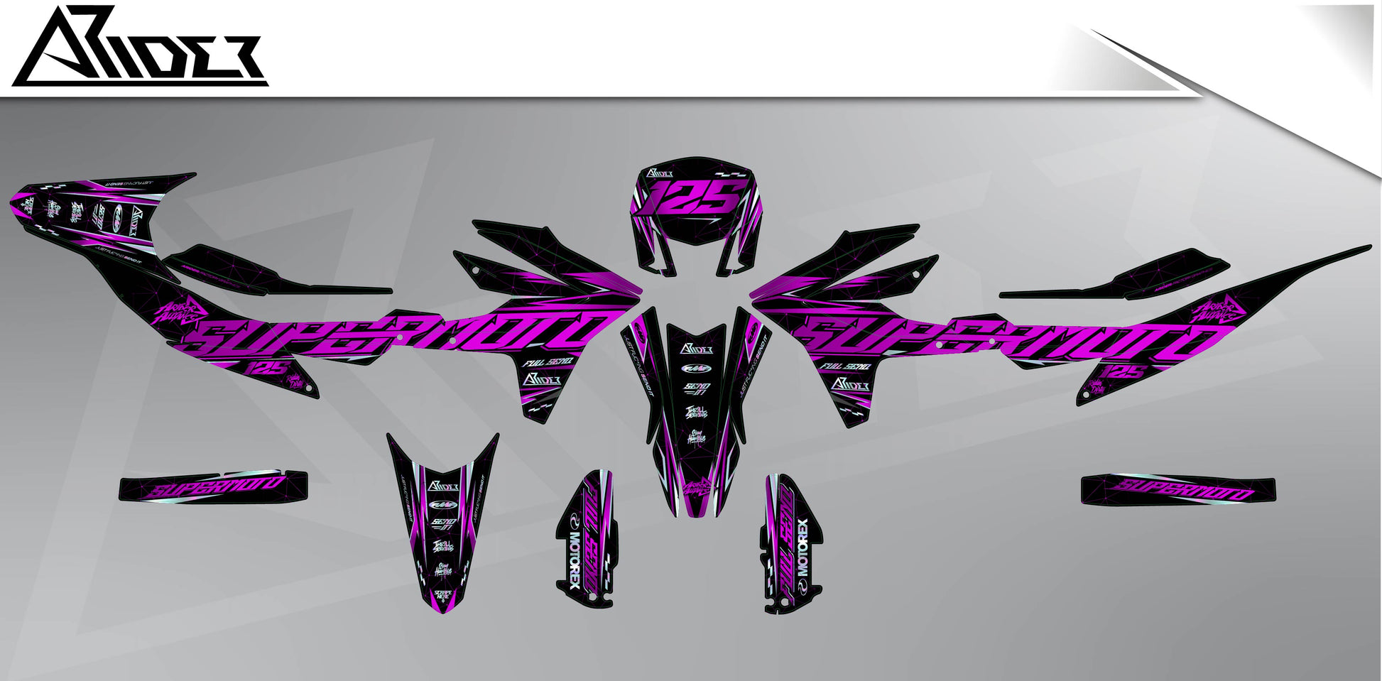 Don't worry! If your motorcycle model is not listed, you should opt for a semi-custom or a 100% custom graphic kits . These options give you the opportunity to customize the design to your specific needs. Semi-custom allows you to make various customizations, while a 100% custom design is designed specifically for your motorcycle.🏍️
