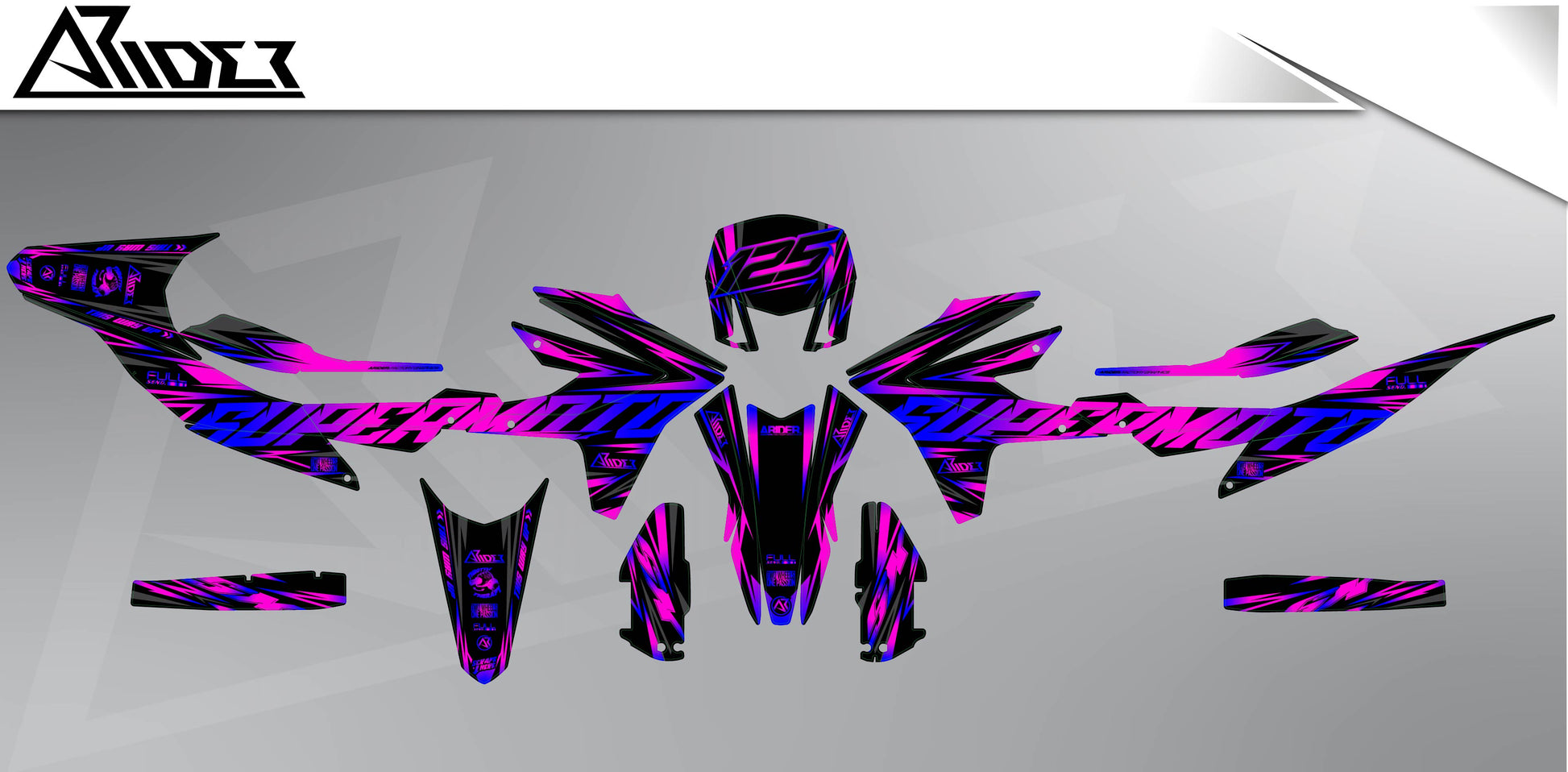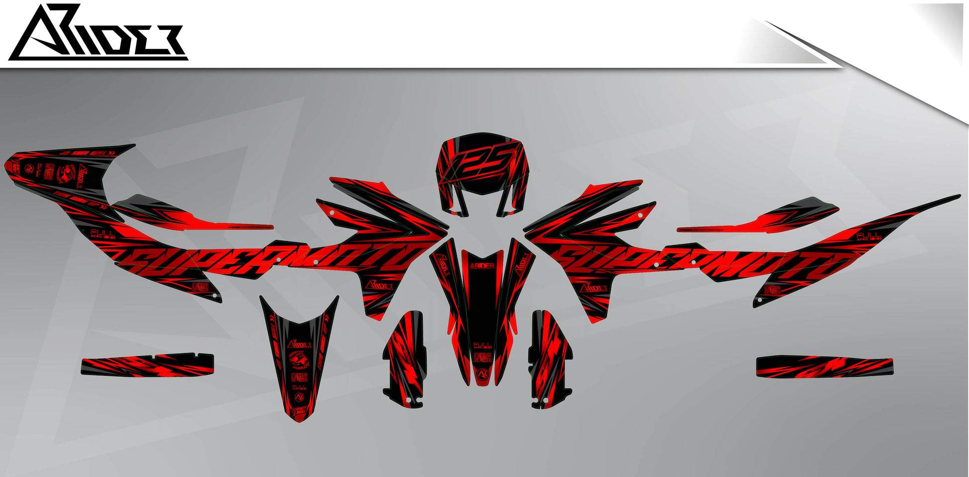 Don't worry! If your motorcycle model is not listed, you should opt for a semi-custom or a 100% custom graphic kits . These options give you the opportunity to customize the design to your specific needs. Semi-custom allows you to make various customizations, while a 100% custom design is designed specifically for your motorcycle.🏍️