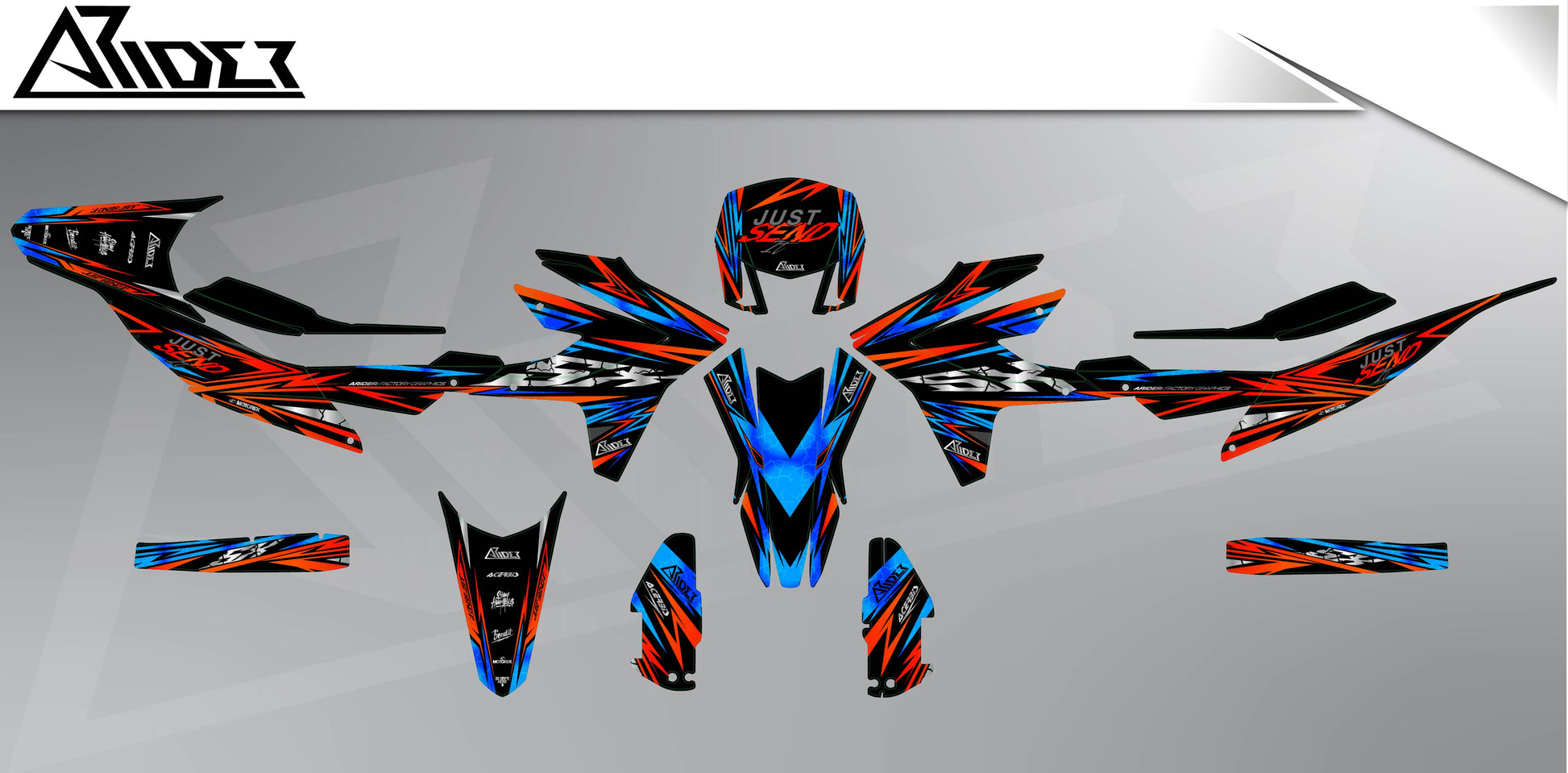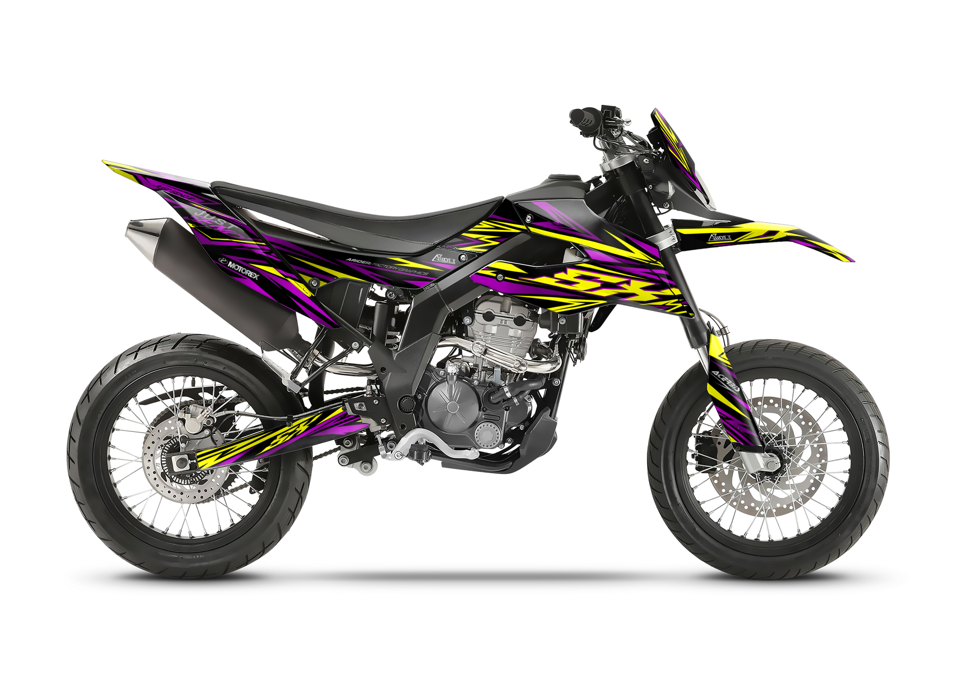 Don't worry! If your motorcycle model is not listed, you should opt for a semi-custom or a 100% custom graphic kits . These options give you the opportunity to customize the design to your specific needs. Semi-custom allows you to make various customizations, while a 100% custom design is designed specifically for your motorcycle.🏍️
