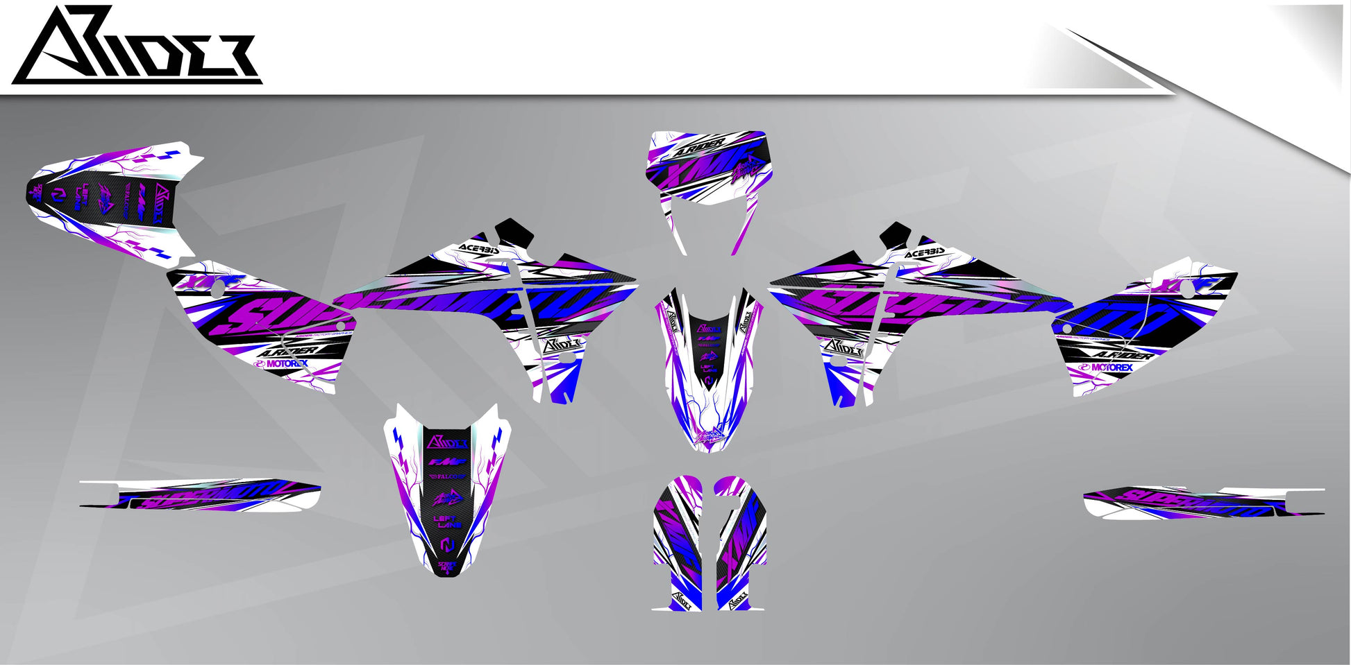 Don't worry! If your motorcycle model is not listed, you should opt for a semi-custom or a 100% custom graphic kits . These options give you the opportunity to customize the design to your specific needs. Semi-custom allows you to make various customizations, while a 100% custom design is designed specifically for your motorcycle.🏍️