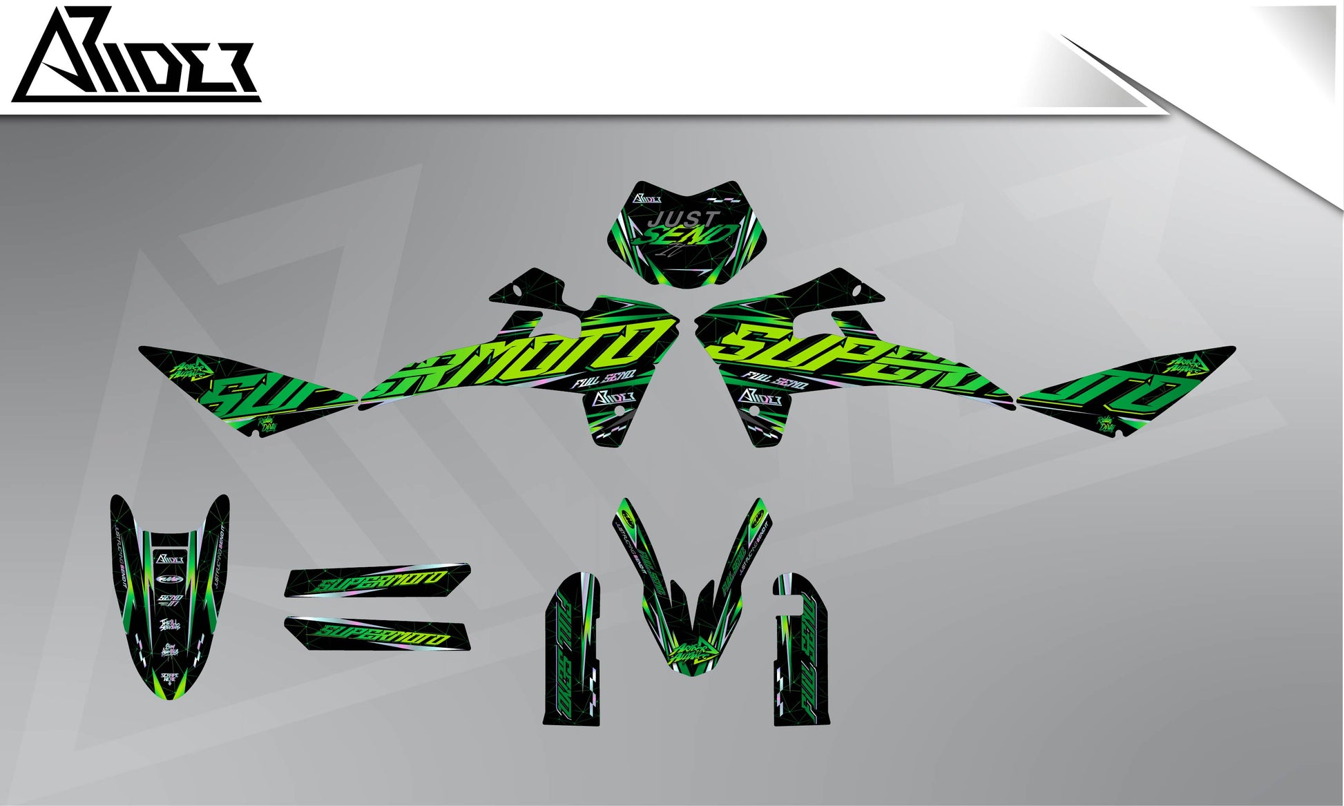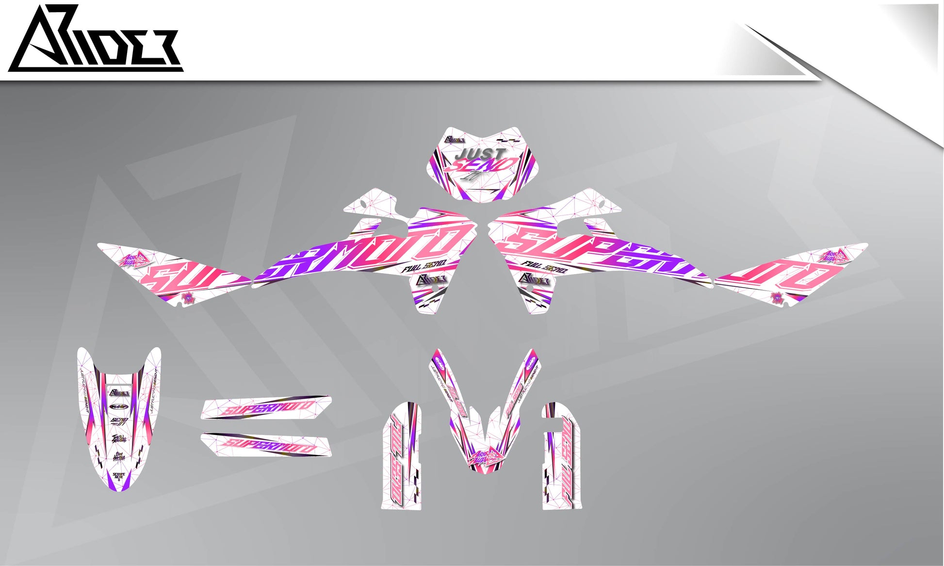 Don't worry! If your motorcycle model is not listed, you should opt for a semi-custom or a 100% custom graphic kits . These options give you the opportunity to customize the design to your specific needs. Semi-custom allows you to make various customizations, while a 100% custom design is designed specifically for your motorcycle.🏍️