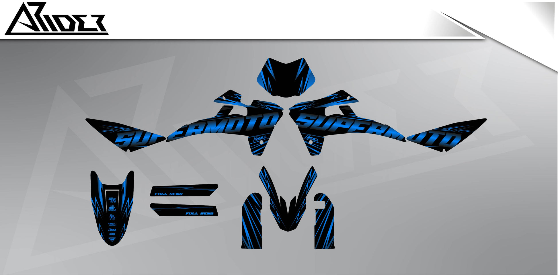 Don't worry! If your motorcycle model is not listed, you should opt for a semi-custom or a 100% custom graphic kits . These options give you the opportunity to customize the design to your specific needs. Semi-custom allows you to make various customizations, while a 100% custom design is designed specifically for your motorcycle.🏍️