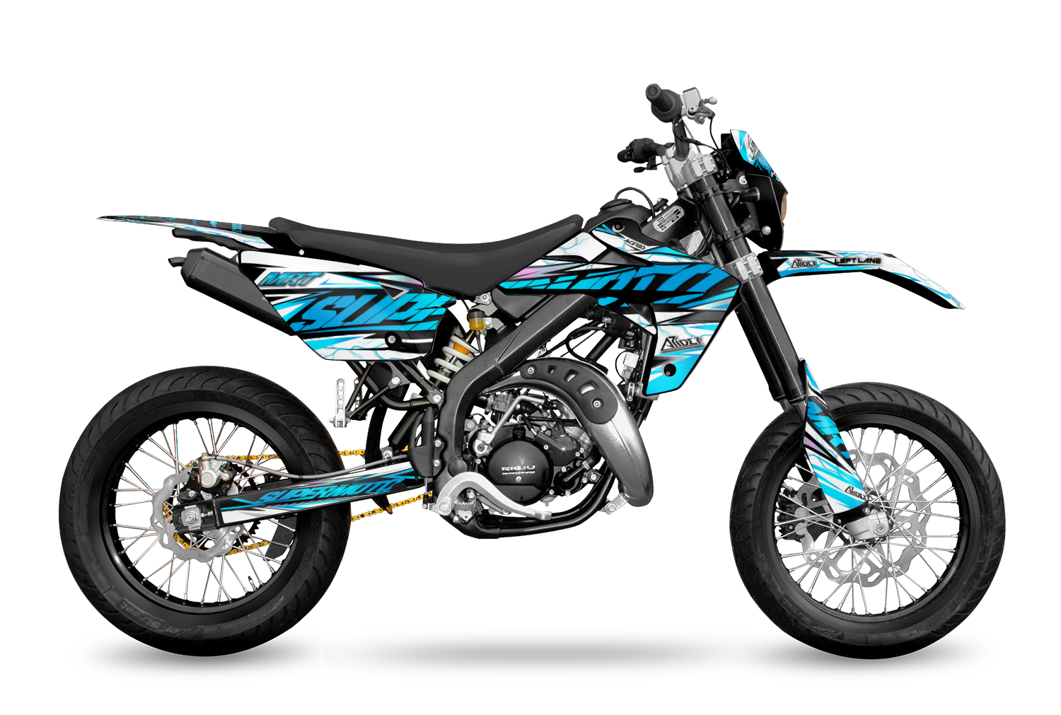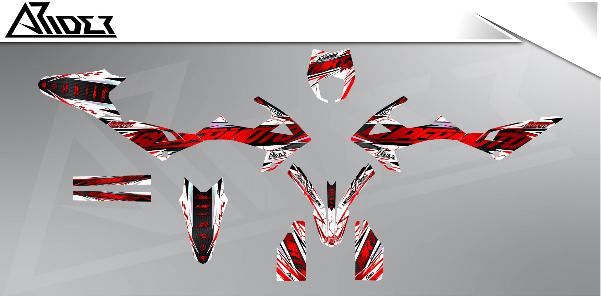 Don't worry! If your motorcycle model is not listed, you should opt for a semi-custom or a 100% custom graphic kits . These options give you the opportunity to customize the design to your specific needs. Semi-custom allows you to make various customizations, while a 100% custom design is designed specifically for your motorcycle.🏍️