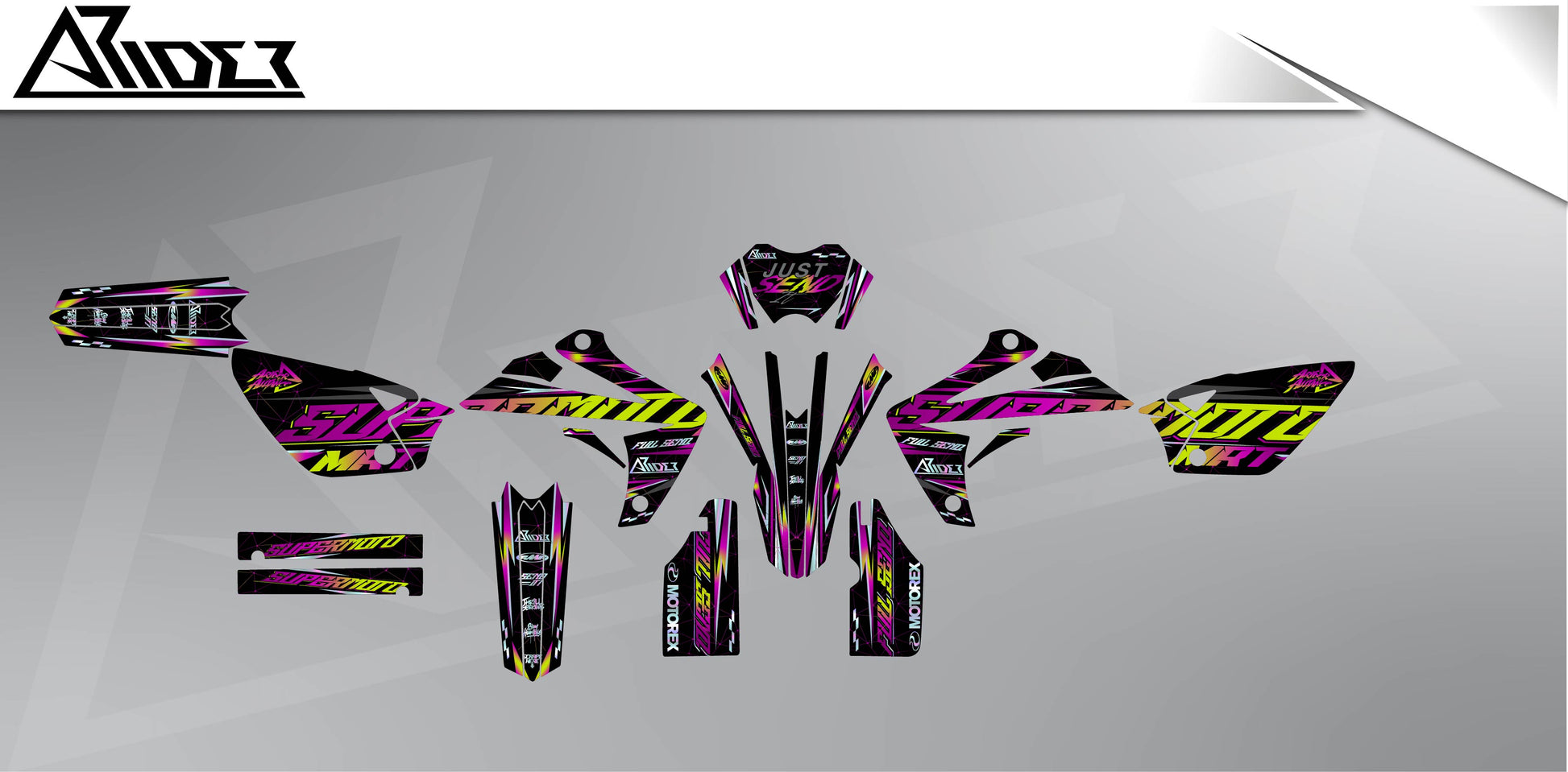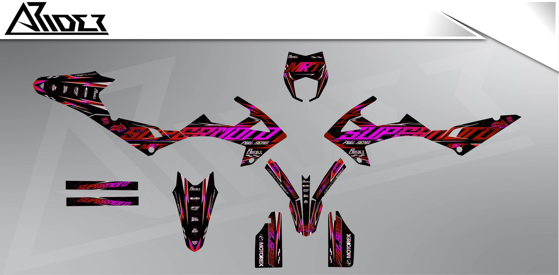 Don't worry! If your motorcycle model is not listed, you should opt for a semi-custom or a 100% custom graphic kits . These options give you the opportunity to customize the design to your specific needs. Semi-custom allows you to make various customizations, while a 100% custom design is designed specifically for your motorcycle.🏍️
