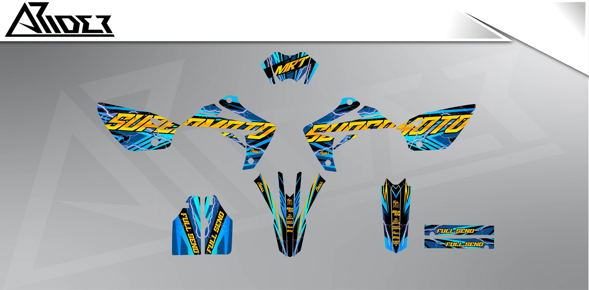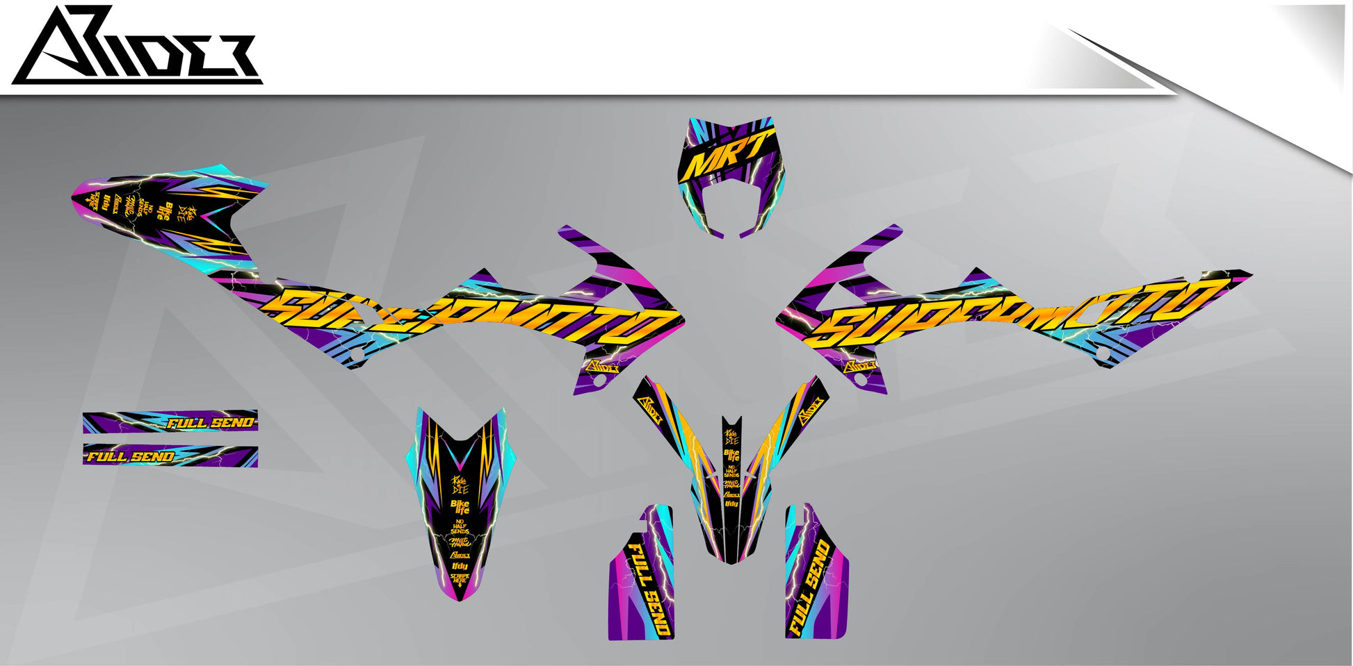 Don't worry! If your motorcycle model is not listed, you should opt for a semi-custom or a 100% custom graphic kits . These options give you the opportunity to customize the design to your specific needs. Semi-custom allows you to make various customizations, while a 100% custom design is designed specifically for your motorcycle.🏍️