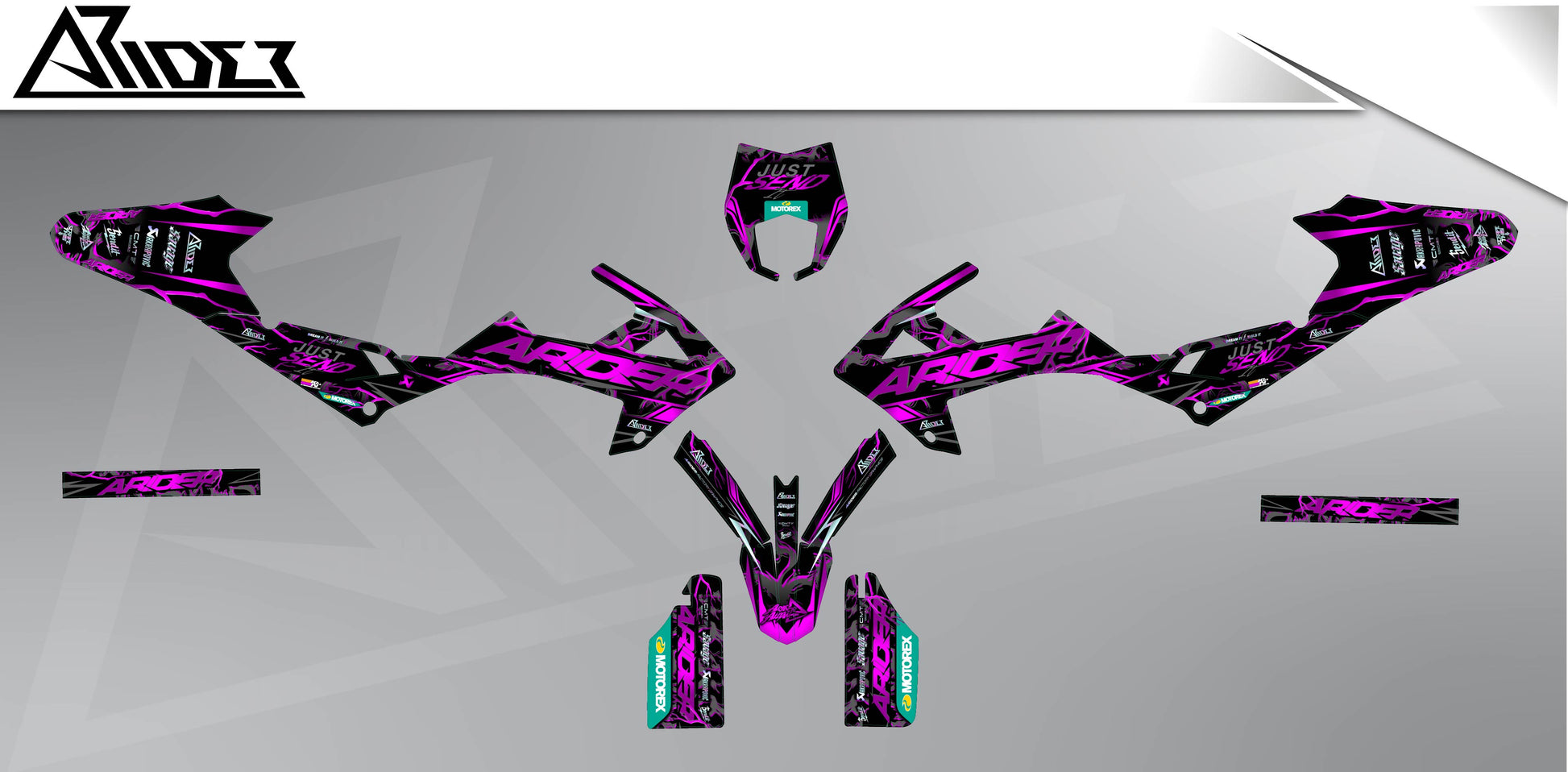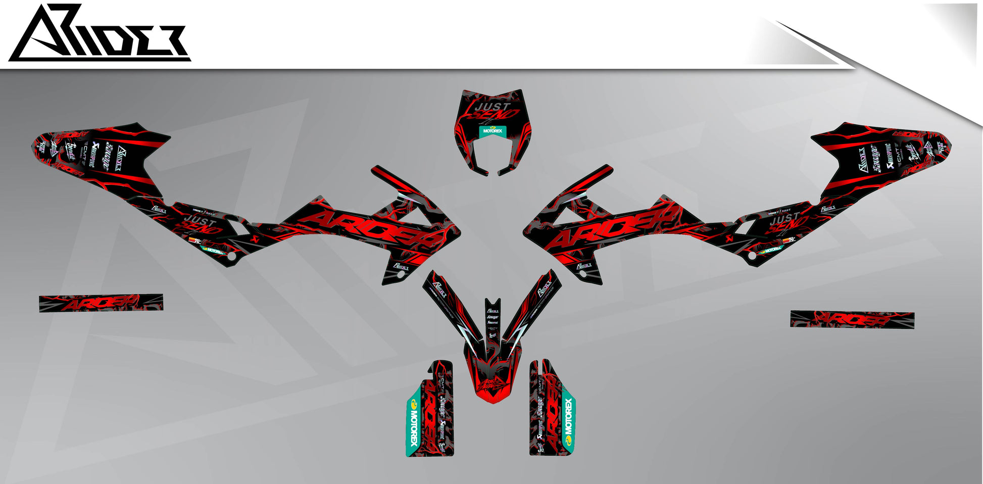 Don't worry! If your motorcycle model is not listed, you should opt for a semi-custom or a 100% custom graphic kits . These options give you the opportunity to customize the design to your specific needs. Semi-custom allows you to make various customizations, while a 100% custom design is designed specifically for your motorcycle.🏍️