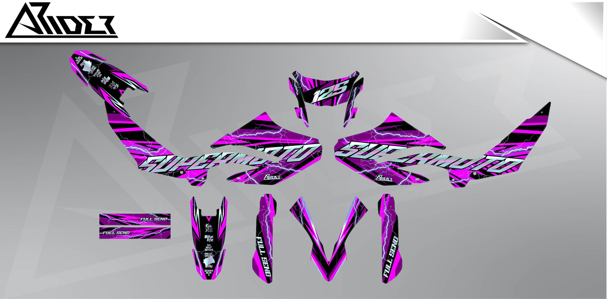 Don't worry! If your motorcycle model is not listed, you should opt for a semi-custom or a 100% custom graphic kits . These options give you the opportunity to customize the design to your specific needs. Semi-custom allows you to make various customizations, while a 100% custom design is designed specifically for your motorcycle.🏍️