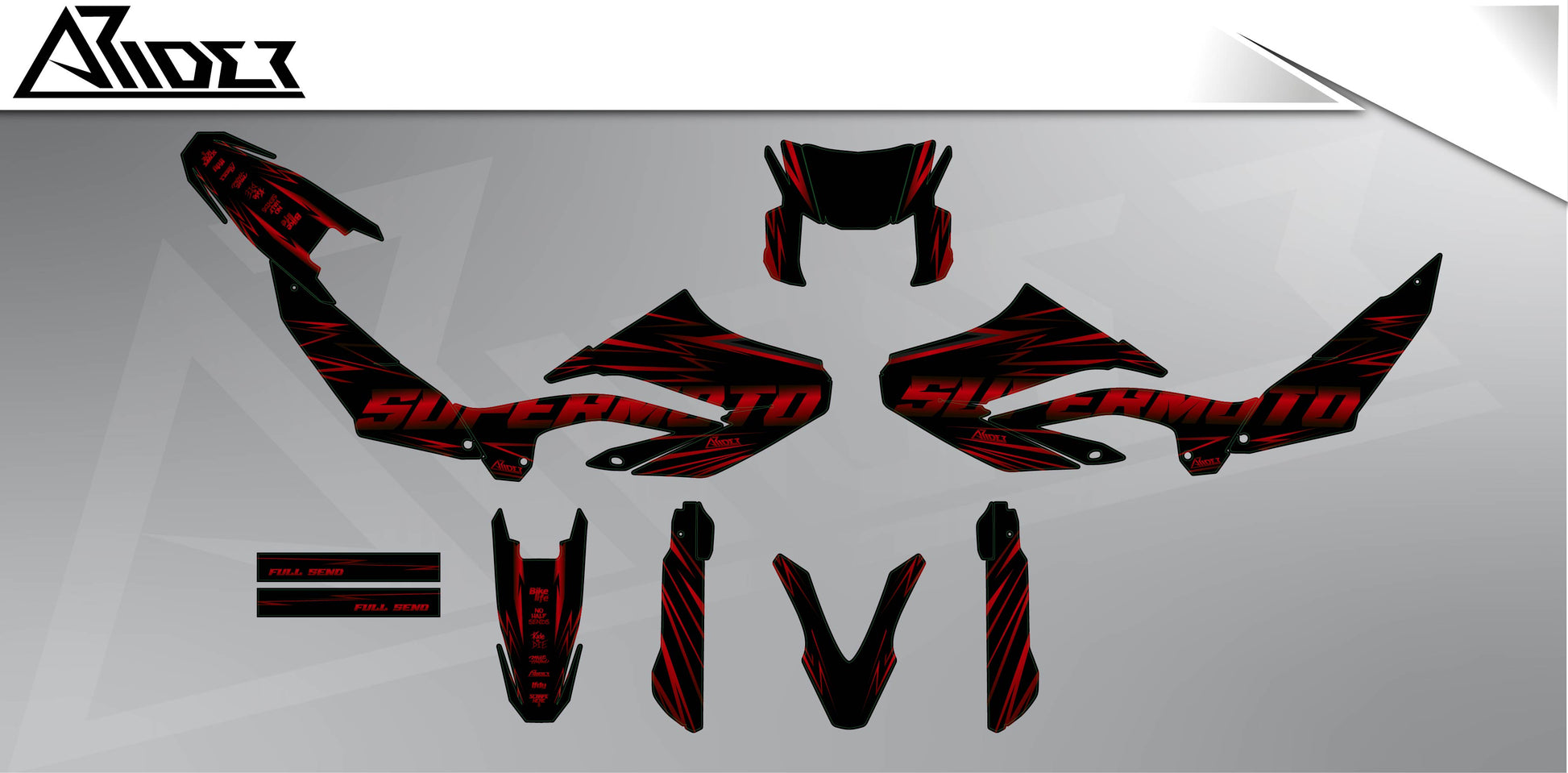 Don't worry! If your motorcycle model is not listed, you should opt for a semi-custom or a 100% custom graphic kits . These options give you the opportunity to customize the design to your specific needs. Semi-custom allows you to make various customizations, while a 100% custom design is designed specifically for your motorcycle.🏍️