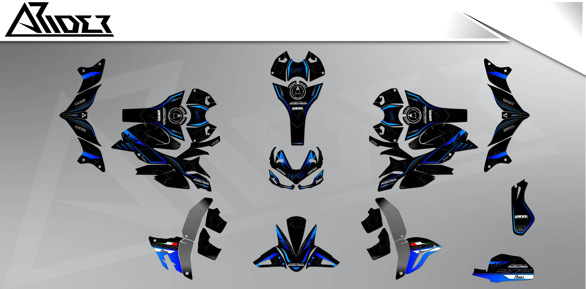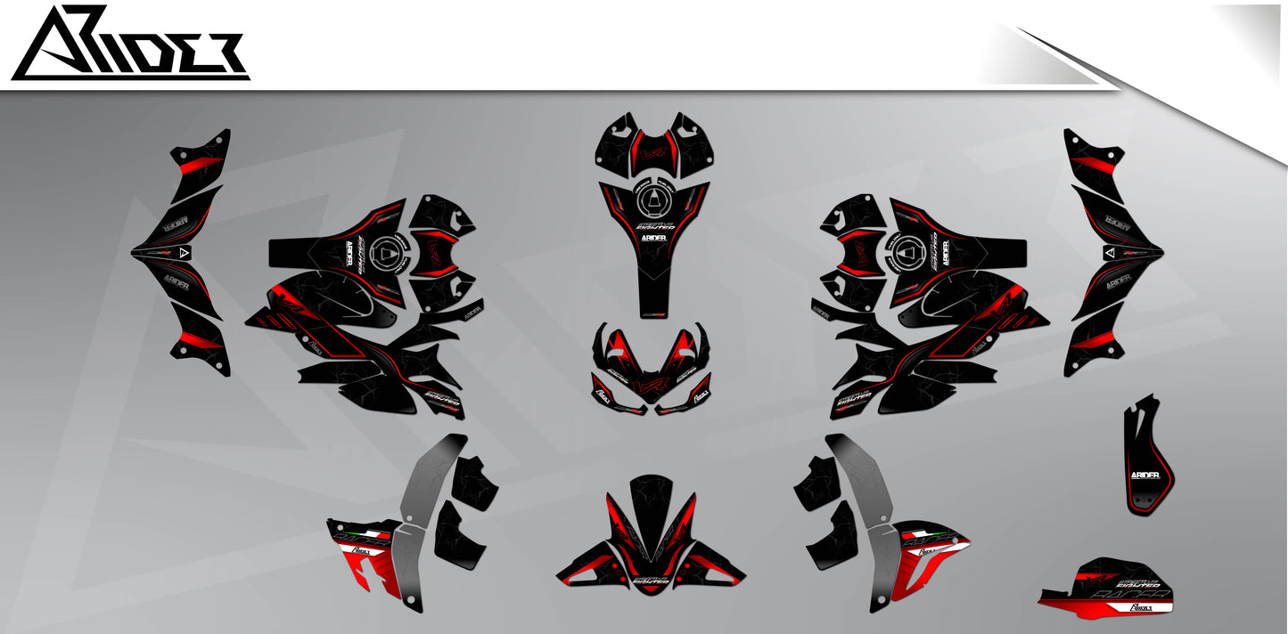 Don't worry! If your motorcycle model is not listed, you should opt for a semi-custom or a 100% custom graphic kits . These options give you the opportunity to customize the design to your specific needs. Semi-custom allows you to make various customizations, while a 100% custom design is designed specifically for your motorcycle.🏍️