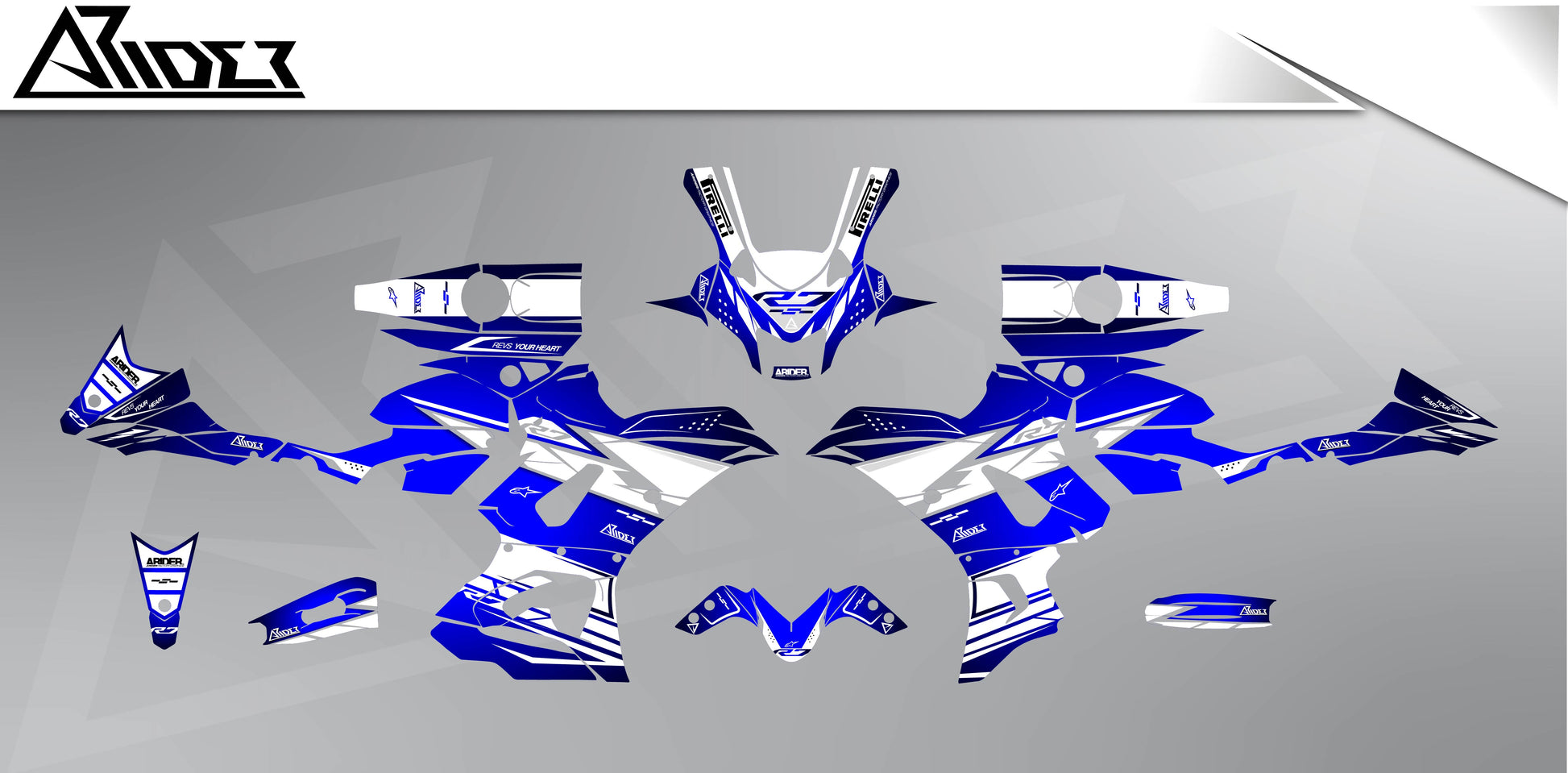 Don't worry! If your motorcycle model is not listed, you should opt for a semi-custom or a 100% custom graphic kits . These options give you the opportunity to customize the design to your specific needs. Semi-custom allows you to make various customizations, while a 100% custom design is designed specifically for your motorcycle.🏍️